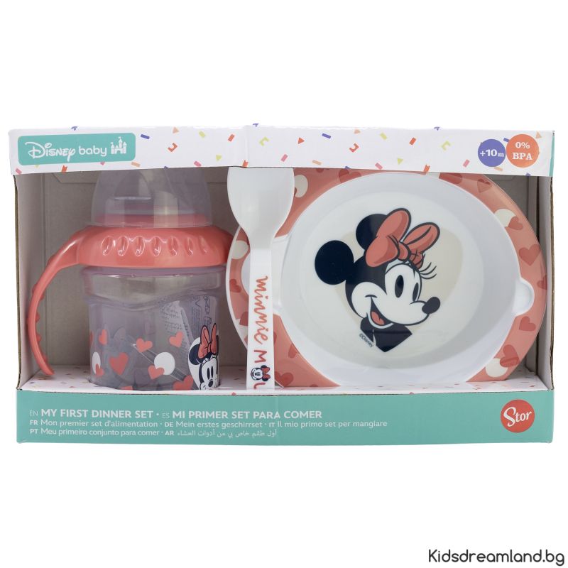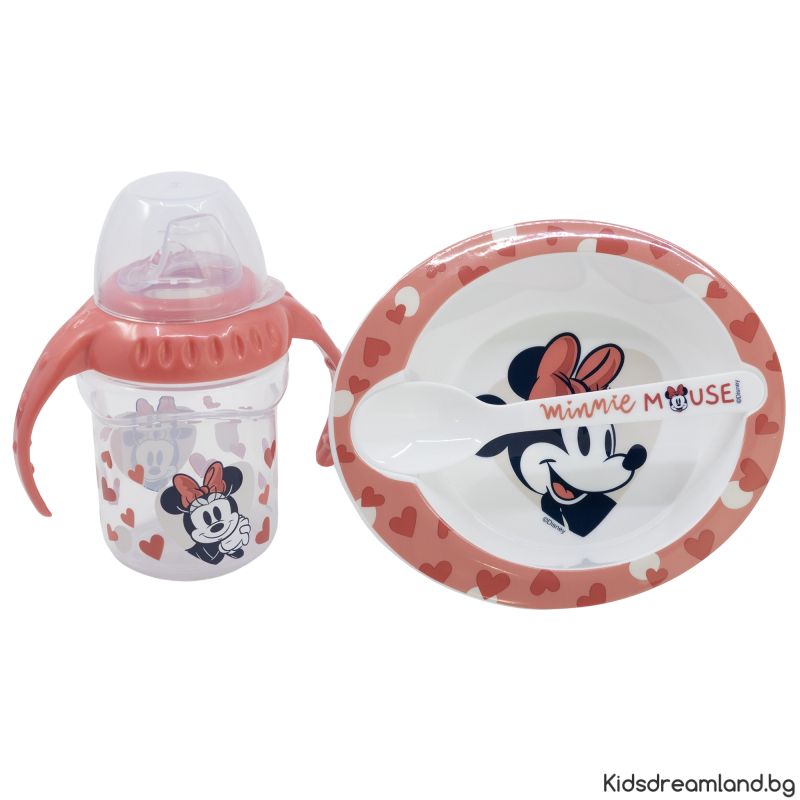 Бебешки комплект от 3 части Minnie Mouse – тренировъчна чаша, купа и лъжичка | STOR