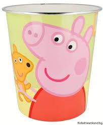 Кофа за боклук Peppa Pig С кофата за боклук вашето дете може да поддържа стаята си чиста с миг на око. Хартиени рисунки, носни кърпички, захарна хартия, стоящи в планините, се побират удобно в 5-литровия кош. Освен това можете не само да събирате боклука в него, но и да бъде декорация на стаята. С това кошче за боклук можете да осигурите ред в детската стая. Размер: 22,5 х 21 см Материал: пластмаса