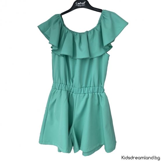 Сладък и удобен къс гащеризон Contrast с къдричка на деколтето,с ластик в кръста.
