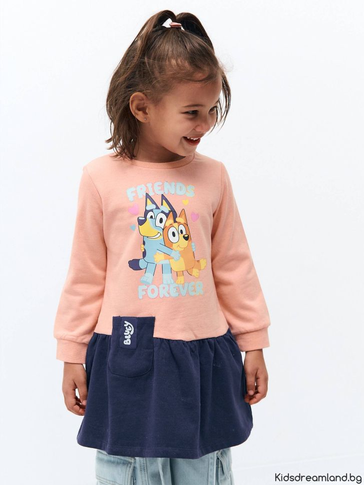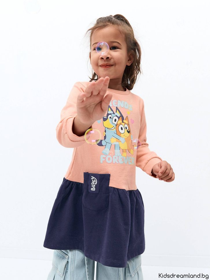 Детска рокля Bluey с волан и дълъг ръкав