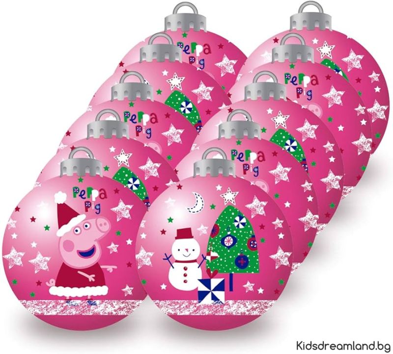 Добавете празнично настроение към елхата с този пакет от 10 коледни топки Peppa Pig! Всяка топка е с диаметър 6 см и е декорирана с любимите герои от Peppa, които ще зарадват всяко дете.