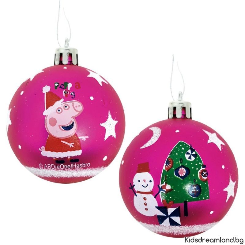 Пакет от 10 коледни топки за елха Peppa Pig с диаметър 6 см
