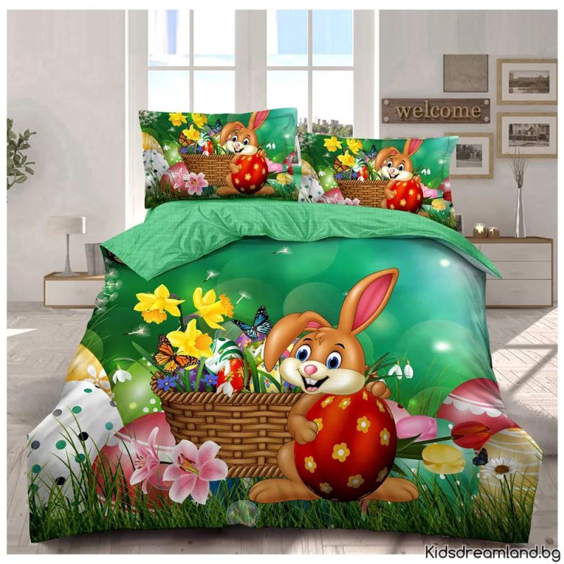 „Двулицев великденски спален комплект от 6 части с празнични мотиви“