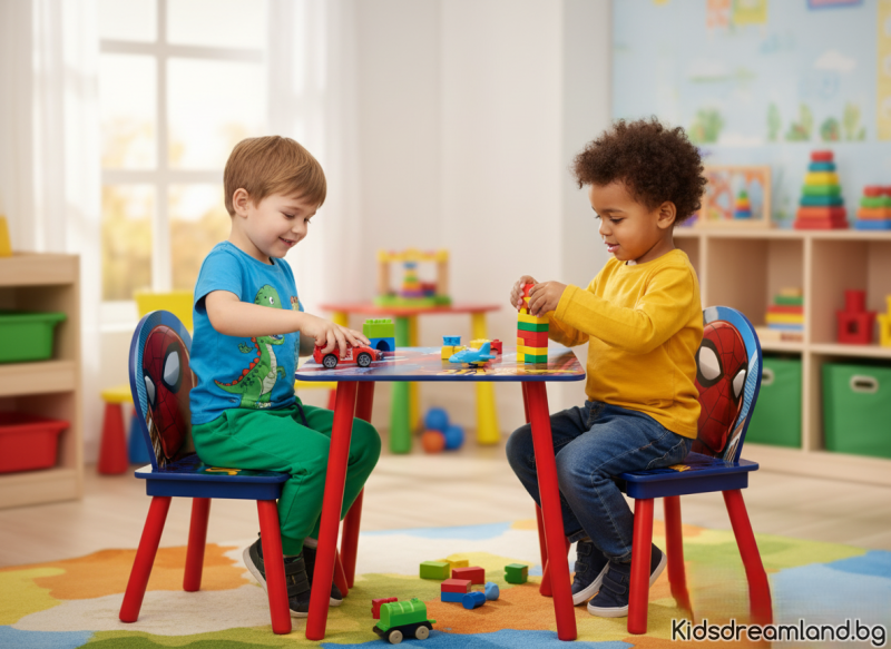 КОМПЛЕКТ ДЪРВЕНА МАСА SPIDER MAN (50X50X44CM) И 2 СТОЛОВА (26,5X26,5X50CM)